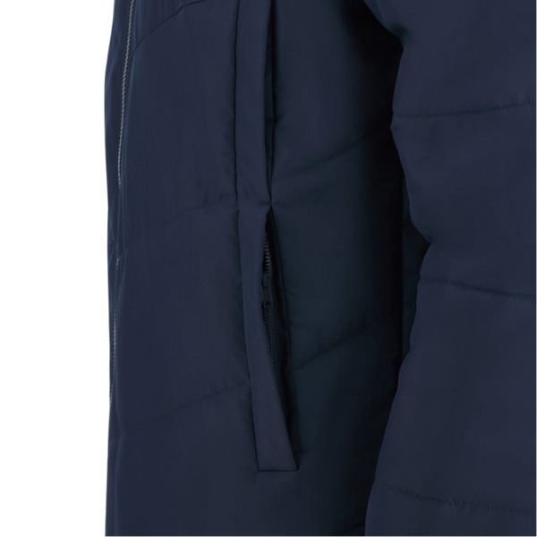 Parka à capuche intégrée dans le col en tissu W-proof imperméable. Le rembourrage spécial en Thermore doté de la technologie Thermal Booster garantit un confort thermique maximal dans des conditions météorologiques variables. Lorsque la température extérieure diminue, le niveau d'isolation thermique augmente de plus de 20 %. Dotée d'une fermeture à glissière centrale complète moulée sous pression et de poches chauffe-mains avec sac de poche en polaire. Elle comporte deux fentes latérales qui facilitent l'assise et une poche interne pratique.